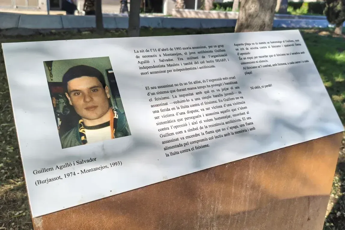 Guillem Agulló tenia divuit anys quan, la matinada de l'11 d'abril de 1993, un grup de cinc neonazis el va assassinar amb una ganivetada al cor a Montanejos (Alt Millars, País Valencià). Era militant de l'organització de joves independentistes Maulets i del col·lectiu antiracista SHARP. El van matar per dur un pedaç antifeixista a la caçadora. Els seus agressors, que s'autodenominaven «Komando Marchalenes IV Reich», van marxar fent la salutació nazi i cantant el «Cara al sol».